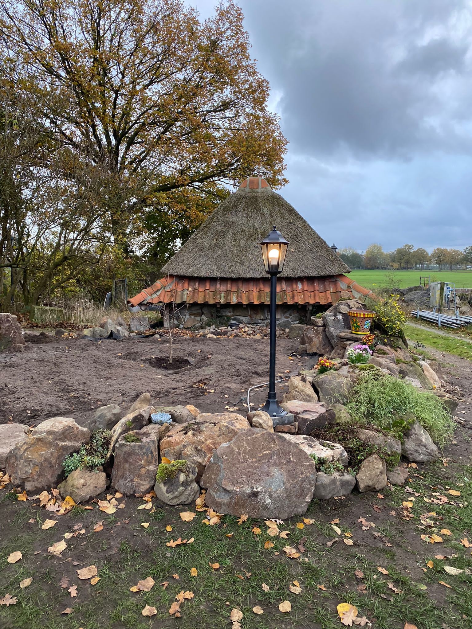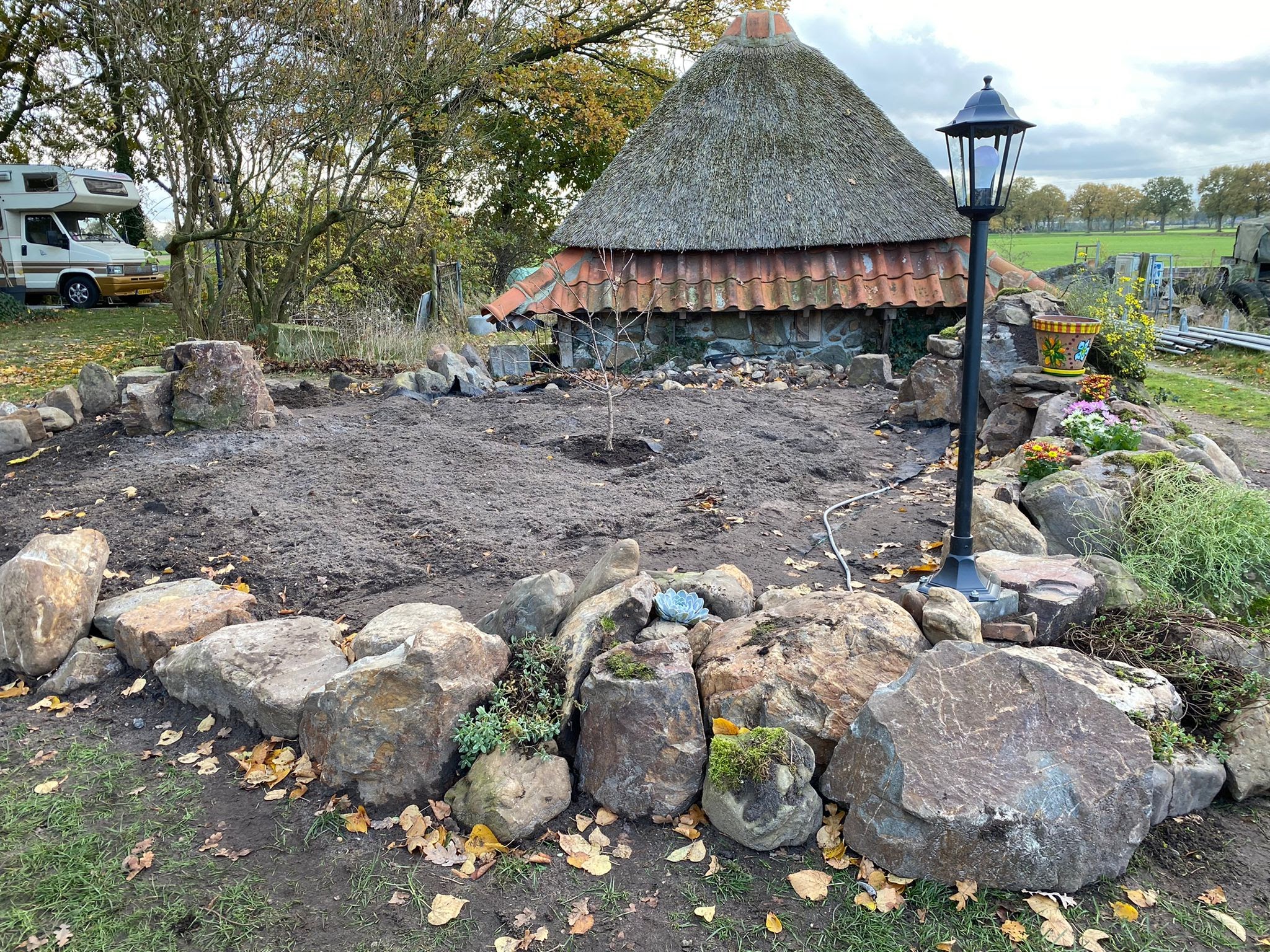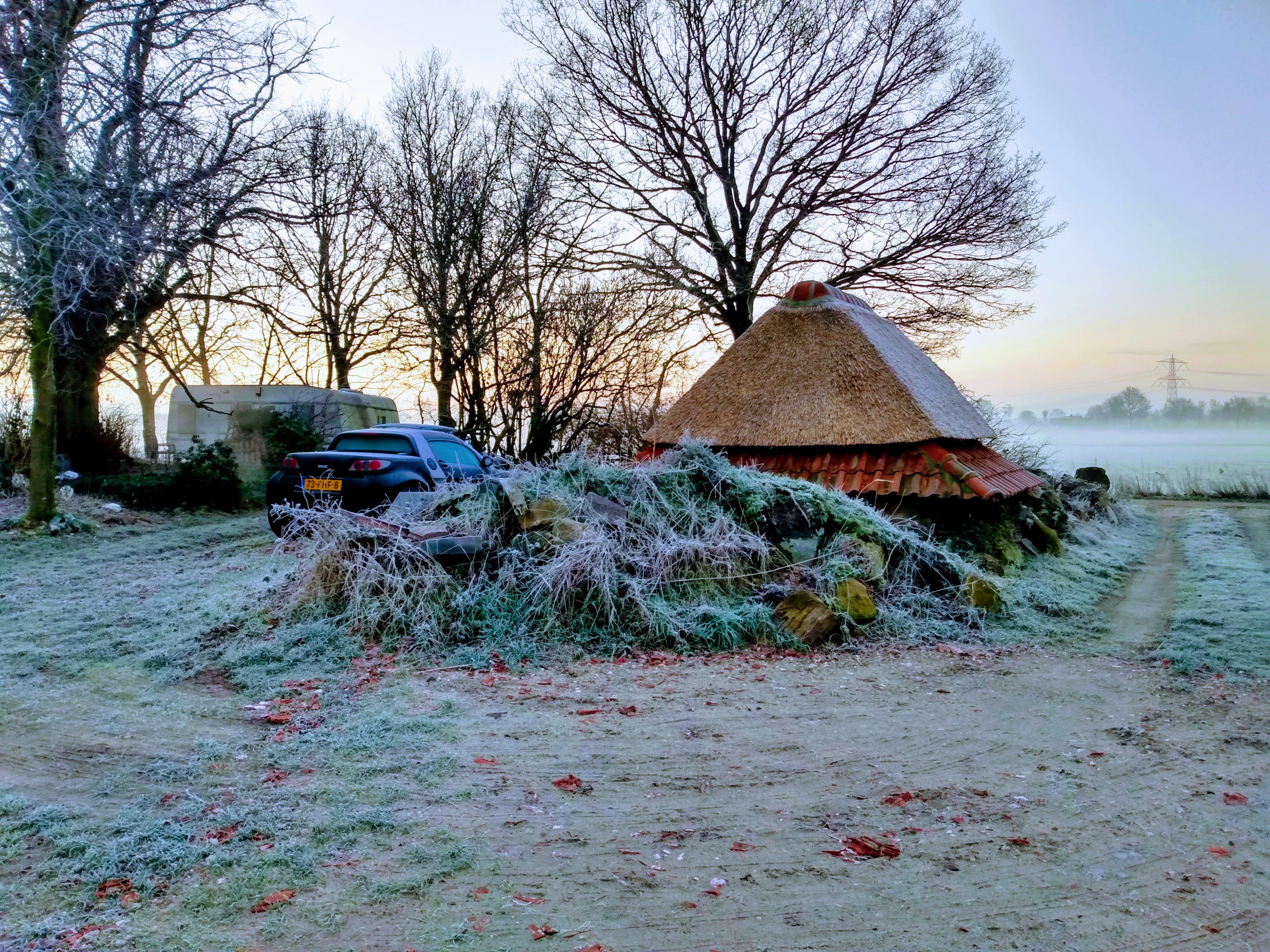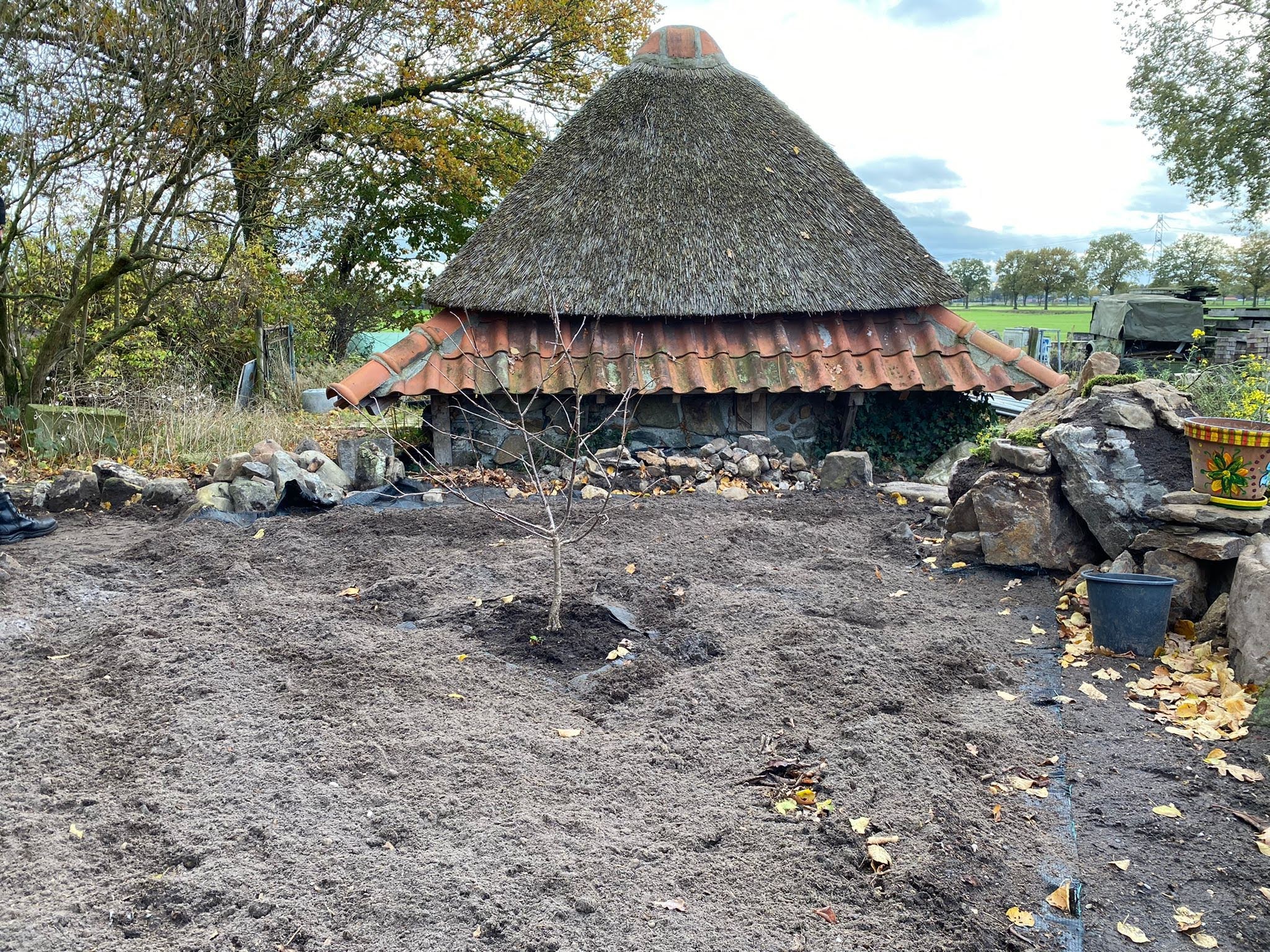 Thatching such a small roof is a very timeconsuming business, besides that, it takes much more reed, compared with a larger roof, because of the short reed, that is needed for the top.