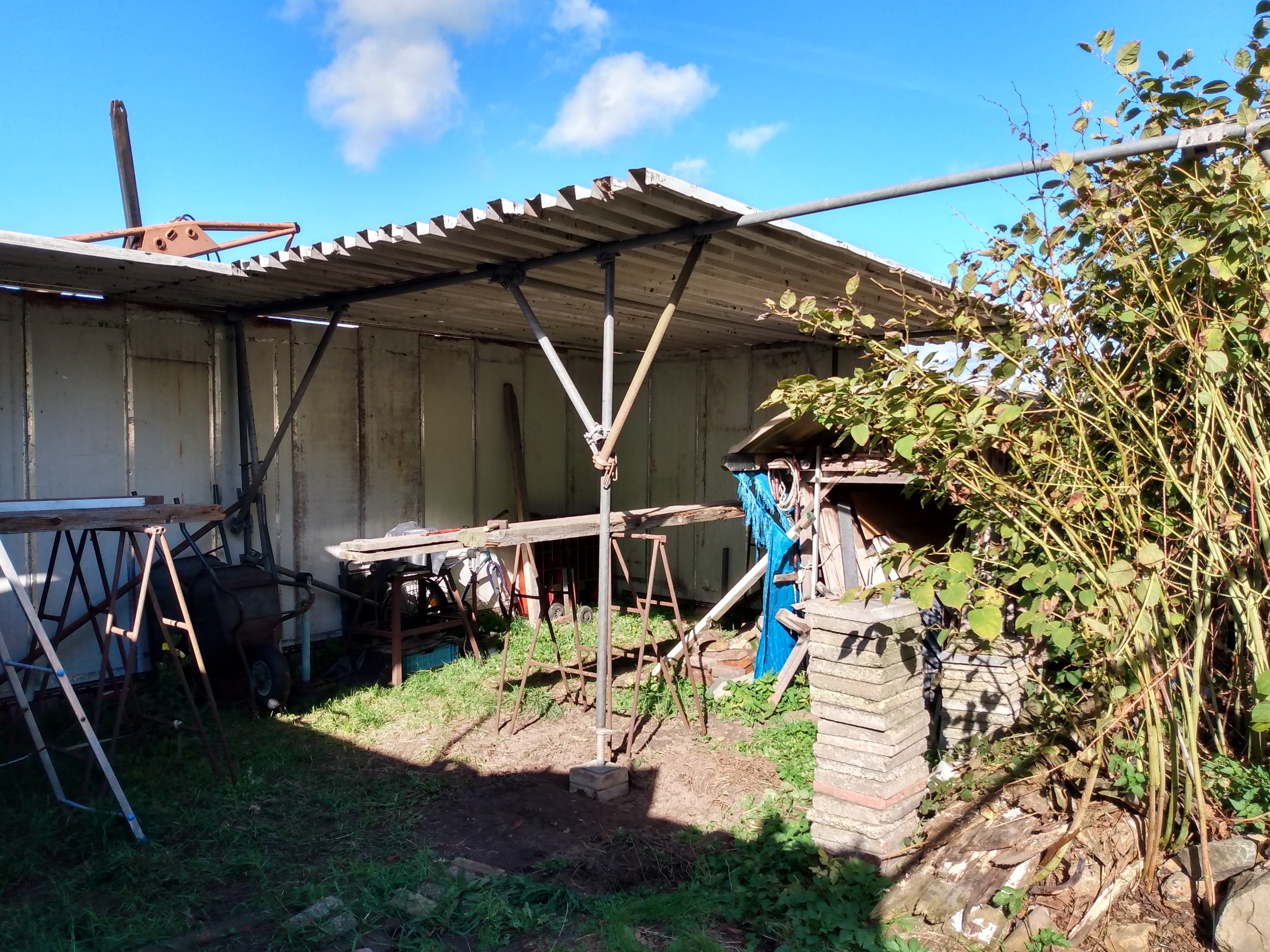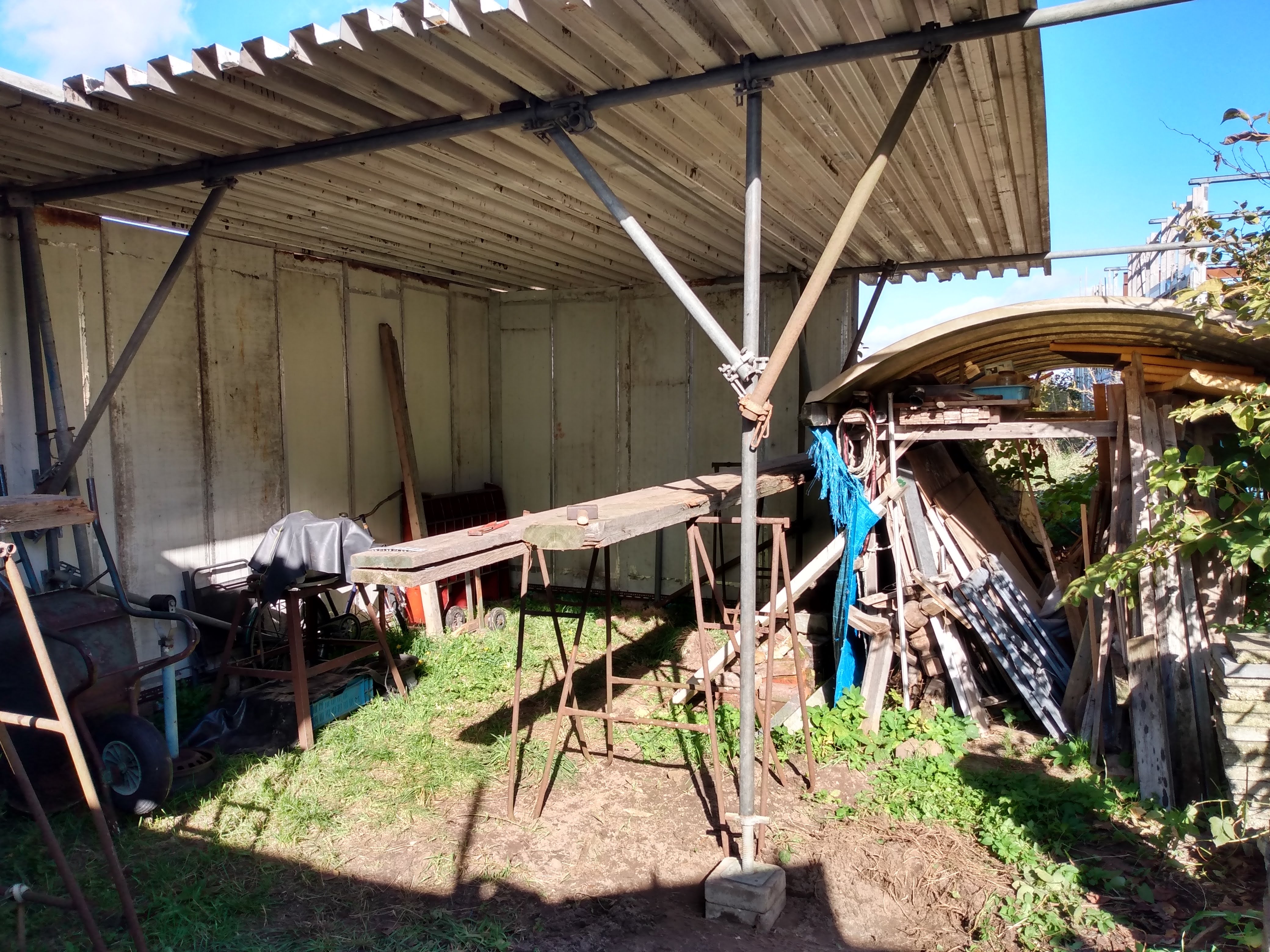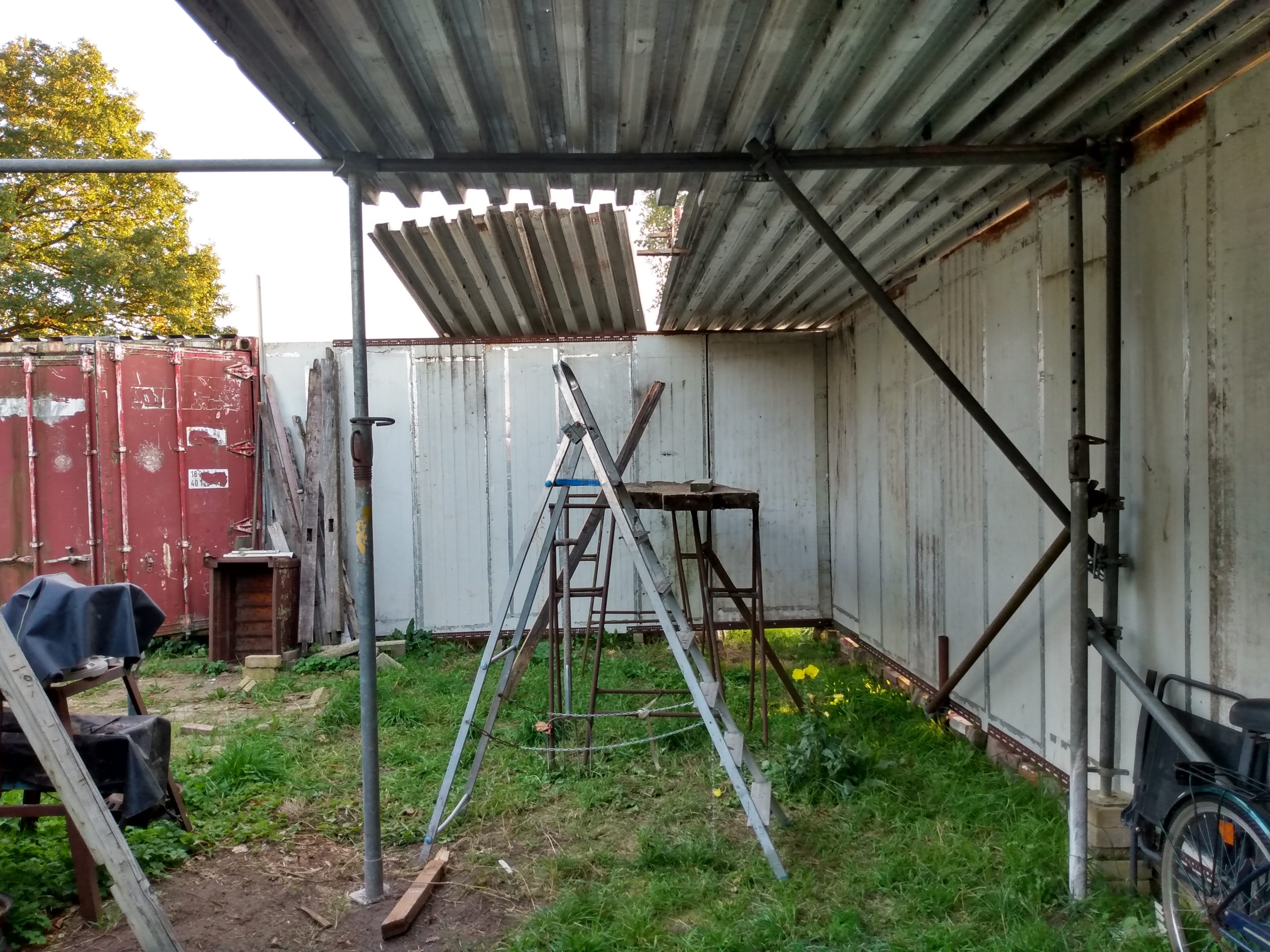 Some time ago i started building a multifunctional carport, with materials people brought to me for free. I created an album with pictures of all stages of the build, and i want to share it here. Creating freely might inspire others to start creating themselves, and that is exactly the purpose of this post: To inspire to create anything you want.